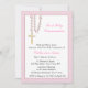 Invitation religieuse pour une fille à la bordure florale rose et perles roses rosaires avec croix d'or. Peut être customisé pour les baptêmes, baptêmes, communions ou confirmations.créé avec quelques originaux artwork©delightful-doodles.com