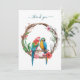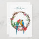 Un beau dessin aquarelle de perroquets assis dans une carte de remerciements à couronne fleurie. Le texte en haut peut être modifié pour dire ce que vous voulez. Peut être utilisé pour les cartes de remerciements ou les cartes de notes. Le dos est vide pour votre message.