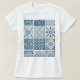 Mosaik-T - Shirt aus blauem Tile - hochwertige weiße Baumwolle mit geometrisch inspiriert geometrischen und floralen Kacheln. Komfortabel, maschinenwaschbar, verschleißfertig.