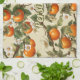 Persimmons Illustration. Obst, Blume und Blätter auf Zweigen. Nahtloses Muster. Benutzerdefinierte Hintergrundfarbe. Eigener Text.