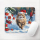 Persische Katze sitzt im Schnee mit Weihnachtshut Mousepad
