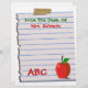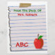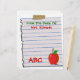 Top 10 Views Zazzle Award! Personalisieren Sie diesen niedlichen, benutzerdefinierten Briefkopf "From The Desk Of" mit jedem Namen auf diesem lustigen, zerrissenen, gepolsterten Notizbuch-Papier, das auf einem sauberen, weißen Hintergrund mit ABC in roten Buchstaben und einer roten Apfelillustrierung am unteren Rand aufgeklebt ist. Oder einfach nur den Text komplett verlassen. Ändern Sie einfach die Farbe des weißen Hintergrunds, den Textstil und die Farbe. Macht ein großartiges Geschenk für Lehrer. Personalisieren Sie einige heute! Gut für Zurück in die Schule!