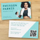 Persönlicher Trainer oder Fitness coach Visitenkarten mit Ihrem Foto auf der Vorderseite zusammen mit Namen, Titel und einem benutzerdefinierten Slogan oder anderen Texten. Fügen Sie Ihre Kontaktinformationen und andere Informationen auf die Rückseite und passen Sie den QR-Code an. Hintergrund- und Schriftart-Farben können angepasst und das Foto mit dem Designwerkzeug skaliert werden.