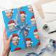 Personalised Face Santa Hat Blue Gift Wrap Geschenkpapier