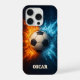 A soccer themed design which displays a soccer ball breaking through a collision of fire and ice. You are able to personalise this design with a name or any text of your choosing. Remember to delete the text before adding your own.