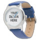 Stil: Kid's Stainless Steel Blue Leather Strap Watch Beautify your rist mit einem eWatchFatory Timepiece! Genießen Sie den Komfort des blauen Ledergurts und passen Sie Ihre neue Uhr mit einem Bild, Design oder Text an. Material: Gesichtshaut: Edelstahlband: Lederabmessungen: Gesichtspunkt: 0,94" Durchmesser Strap: 8" x 0,63" Gehäuse: 1,31" Durchmesser Gewicht: 0,06 lb 3-Hand Analogon Japan Quarz® Vollfarbendruck auf der Vorderseite Wahl von 5 Bandfarben - Schwarz, Blau, Tinte, Rote und Lila Verschluss Wasserbeständigkeit: Bis zu 3 Geldautomaten (98,4 ft) 1 Jahr Hersteller beschränkte Garantie Battery beinhaltete Erfüllung oder übersteigt alle Anforderungen und Vorschriften der US-Regierung für Kinderuhren Dieses Produkt wird für Kinder von 4 bis 12 Jahren empfohlen