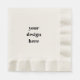 Stil: Präpariertes Mittagessen Kleine Details machen einen großen Unterschied... Kerzenlicht, Stimmungsbeleuchtung und sogar zarte Papierservietten, die individuell und personalisiert sind. Diese Servietten sind in Weiß und Ecru erhältlich und tragen so zu Ihrer Dekoration bei, denn es ist alles im Detail! Abmessungen: 6.5"l x 6.5"w (gefaltet), 3 lagig bedruckt in voller Farbe auf Ihre Wahl der weißen oder ecru farbigen Servietten Coine oder Standard Servietten erhältlich Verkaufen in Stückzahlen von 50 In loser Schüttung und rett! Dieses Produkt ist Lebensmittelkontaktsafe Tipp: Bei der Bestellung von Servietten ist die Regel 3 Servietten pro Gast. Designertipp: Um einen hochwertigen Druck zu erhalten, achte darauf, dass der gestaltbare Bereich 10,8 x 15 cm beträgt. Es gibt keine Blutung.