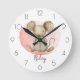 Passen Sie diese niedliche Uhr einer beigen Wasserfarbenmaus auf einem rosa Hintergrund an. Ideal für ein Kinderzimmer, Kinderzimmer oder wo auch immer Ihre Kleinen ihren Tag verbringen.