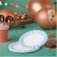 Das ist eine wunderbare Papiertafel für Ihre Partys. Die Streifen sind blau-weiß um den Rand. Das Zentrum ist leer und steht Ihnen zur Verfügung, um es, wenn Sie möchten, mit Ihrem Hochzeitstag, dem erwarteten Fälligkeitstermin usw. zu personalisieren.