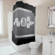 Dieser personalisierte, schwarze Duschvorhang weist silberne metallische Akzente auf und sorgt für einen harten Look in jedem Badezimmer.