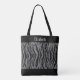 Personalisieren Sie diese schwarz und grau-silber Zebra Print Women's Tote Bag, Hand Bag mit Text auf der Vorderseite und andere oder den gleichen Text auf der Rückseite. Großartige Geschenke für Ihre Brautmädchen oder Hochzeitsfeier. Jede Frau würde diese Tasche als Geschenk Liebe.