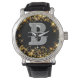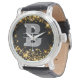 Uhr, Vintage Männeruhr mit schwarzem Lederarmband
