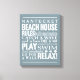 Die trendige Strandkultur in sanftem, verwittertem Blau mit weißen Buchstaben. Passen Sie sich mit Ihrem Familiennamen oder Ihrer bevorzugten Lage am Meer an und lasse jedem, die "Regeln" des Strandhauses zu kennen, die befolgt werden müssen. Von Gebäude Sandburgen bis zur Suche nach Muscheln, die Reihenfolge des Tages ist RELAX!