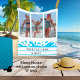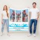 Fleecedecke mit eigenen Fotos und Texten mit Wellensplasch-Bild und türkisfarbenen Streifen.