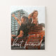 Personalisieren Sie dieses Rätsel mit Ihrem Lieblings-Foto Ihres besten Freundes. Geben Sie ein Geschenk, das Erinnerungen zurückbringen wird und als Pfand zwischen Freunden geschätzt wird. Passen Sie diese Vorlage einfach mit Ihrem eigenen Foto an. Weiße Overlay-Skripte, moderne Schrift für das Wort "beste Freunde"