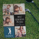 Überraschen Sie Ihren Golfprofi Opa mit einem Vatertag, Weihnachten oder Geburtstag Geschenk, das er stolz auf den Golfplatz verwenden kann! Fügen Sie 4 (vier) individuelle Bilder zu diesem Design von Ihrem Telefon oder Computer, die süße Wortmarke, die "Best Opa by Par", ein niedliches kleines Herz, das in jede Farbe verändert werden kann, den Namen der Enkel und personalisieren mit ihrem Namen unter einer modernen weißen Golfer-Illustration. Alle Texte und Farben können mit der bereitgestellten Vorlage angepasst werden.