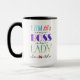 Die personalisierte Watercolor-Typografie bin ich die Chef-Dame Mug. Grüner, blauer, lila, orange und roter Watercolor auf weißem Hintergrund mit den Wörtern bin ich die Chef-Dame. Feministische Tasse für weibliche Chefs, Frauen verantwortlich, Mädchengeschäftsinhaber. Aquarelltypographie, Spaßgeschenk für sie. Personifizieren Sie mit Namen im Schwarzen, das in hellrotem zuerst ist. Entwerfen Sie auf beiden Seiten von der Tasse.