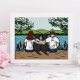 Personalisierte Black Labrador Familie Braun Langhaarige Mama und Braun Haar Vater mit schönen zwei schwarzen Labrador Retriever Hunde. Sie haben eine Erholung am See. Das Weiße Magnolien blüht. Sie können personalisieren. Nette Geschenke für Hundefreunde, die Labradors Liebe! Erstellt von Naomi Ochiai.