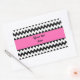 Personalisiertes Zickzack Zickzack-Muster in Schwarz-Weiß. In der Mitte befindet sich ein heißrosa Band, wo Sie Ihren eigenen Text hinzufügen können.