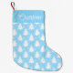 Dieser wunderschöne Weihnachtsbaum-Strumpf zeichnet sich durch ein bezauberndes, blaues Weihnachtsbaummuster aus, mit dem Sie oder Ihre Lieben oben einen individuelle Name hinzufügen können!