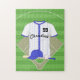 Niedliches Baseballdesign. Auf der Vorderseite ein blau-weiß gestreiftes Baseball-Trikot, das mit einem Namen und einer Zahl, einer blauen Baseballkappe, Baseball und Baseball Fledermaus individuell gestaltet werden kann. Im Hintergrund befindet sich ein Baseballfeld. Wir können dieses Design in Farbschema erstellen, das Sie benötigen, kontaktieren Sie uns einfach über unseren Shop giftsbonanza vor dem Kauf