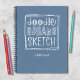 Ein personalisiertes 8.5 x 11 Skizzenbuch in Blau und Weiß. Die Wörter "Doodle, zeichn, Skizze" in einem handgezeichneten Schriftart personalisiert mit Ihrem Namen unten und Ihrem Namen auf der Rückseite. Passen Sie das Sketchbook mit dem Namen Ihrer Wahl an, damit sich jemand ganz besonders fühlt. Macht ein lustiges Geschenk zum Geburtstag oder zu Weihnachten. Es gibt eine Vielzahl von Farben. Entworfen für Sie von BlackBerry Boulevard.
