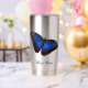 Schöne, blaue Morpho-Schmetterlinge markieren diesen Edelstahl-Isolierwäscher. Tumbler kann mit jedem beliebigen Namen oder Text personalisiert sein.