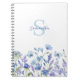 Personalisiertes blaues Wildblume Aquarell Blumenheft. Einfach den Text ändern. Ideal für Schule oder Büro.