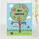 Eine süße Grüße Karte, um Ihnen zu sagen, danke an Ihren Lehrer, die personalisiert sein kann. Die Karte zeigt eine farbenfrohe Gartenszene mit einem Apfelbaum, einer Hummel, die herumschnüffelt, und einem Ladybird, der auf dem Boden schwebt.