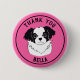 Dieser Button zeigt Bella, einen schwarz-weißen Hund. Sie ist ein Jatzu (d.h. ein japanisches Kinn und shih-tzu Mix). Personalisieren Sie diesen Hundeknopf mit Ihrem eigenen Namen oder dem Namen Ihres Hundes. Diese Dankeschön-Taste wäre großartig für Hunde-Party, Welpen-Party, Hundefreunde, Gastgeschenke, etc.