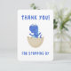 Babydusche Dank Ihrer Karte verfügen über die niedliche Cartoon Dinosaurier Schlüpfen aus einem Ei mit personalisiertem Text auf beiden Seiten.