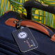 Ein schönes und modernes blaues Design, um die Besitztümer zu identifizieren, indem die Namen der Reisenden und die ersten