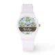Sind Sie noch für Ihren Prinz Charming gewartet oder haben Sie ihn gefunden oder haben Sie nur Liebe Frösche? Dann Liebe du diesen niedlichen Frosch mit einer Krone, die auf einem Lilienpolster neben einem Kalotten sitzt, umgeben von Herzen, Blume und Libellen. Dieses niedliche Froschdesign und -muster kann mit Ihrem Namen auf dem DRUCKEN Farbbanddesign personalisiert werden. Artwork © Chrissy H. Studios, LLC. Alle Rechte vorbehalten.