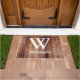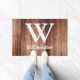 Schön rustikale mittlere braune hölzerne Planken mit Ihrer Wahl des großen weißen Monogrammbuchstaben mit vollem Familiennamen im Skript unter ihm. Diese Fußmatte ist auf jeder möglicher Türstufe einfach reizend!