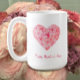 Passen Sie meine handgemalte Aquarell-Tasse für ein süßes Muttertagsgeschenk an. Es machte mir Spaß, diese blütenrosa und pfirsichfarbenen Rose in Herzform zu malen. Sie sind nicht perfekt, aber sie werden geliebt, genau wie wir. Einfache, minimalistische Schrift sagt: "Glücklicher Muttertag". Fügen Sie Ihrem Mama den Namen hinzu, um diese niedliche rosa, schicke Typografie zu personalisieren. Sie können auch eine persönliche Nachricht hinzufügen, indem Sie den Text anpassen, der sagt: "Wir Liebe Sie Mama" Ich hoffe, Sie genießen diese einfache, moderne, trendige Mutter-Tag-Tasse. Teilen Sie diese Tasse mit Ihrer Mutter, Ihrer Stiefmutter, Ihrer Großmutter oder Ihrer Mutter für ein personalisiertes Muttertagsgeschenk. Dieses niedliche originale Aquarelldesign wird jeden zum Lächeln bringen.