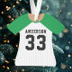 Feiern Sie Ihren Baseball-Stern mit diesem personalisierten, grün-weiß pinstripe Jersey-Ornament. Ideal zum Feiern einer besonderen Saison, eines Spielers oder eines Teams. Passen Sie ihn mit einem Namen und einer Nummer an, um einen einzigartigen Keepake zu erstellen.