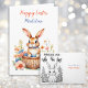 Vintages Kaninchen in einem Osterkorb und Blume Aquarellkunst. Hübscher Pfirsich, Korallen, Rosa und blauer Garten von Blume. Ein süßes Osterangebot. Niedliche Kinderkarte. Inside page ist eine Farbseite. Personalisierte Osterkarte.