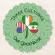Personalisierte Untersetzer mit einem Kleeblatt mit einer anderen Fahne in jedem Blatt, die die mexikanische, irische und amerikanische (USA) Kultur repräsentieren. Oben, die Worte DREI KULTUREN. Unten, ein IHRER NAME. Fügen Sie Ihren Namen oder den Namen eines anderen an der entsprechenden Stelle hinzu, um einen personalisierten Untersetzer für Ihr Party oder Ereignis zu erstellen. Design umfasst die Flaggen von Mexiko, Irland und den USA. Ideal für Geburtstagsfeiern. Spaß für St. Patrick's Day, Cinco de Mayo, und 4. Juli Party auch.