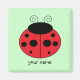 Ein niedlicher Ladybug auf einem quadratischen Magneten. Die Farbe und der Stil des Magneten können angepasst werden. Fügen Sie Ihren Namen oder den Namen eines Freundes für eine lustige Geschenkidee hinzu!