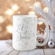 Genießen Sie den Schnee mit dieser Winterkaffee-Tasse mit goldenen und silbernen Schneeflocken. Personalisieren Sie mit einem Namen auf der einen Seite und auf der anderen Seite mit den Worten "Let it Snow"