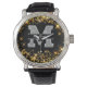 Uhr, Vintage Männeruhr mit schwarzem Lederarmband