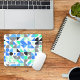 Dieses moderne Mauspad weist farbenfrohe geometrische Muster in Schwarz, Blau und Grün auf Weiß auf. Personalisieren Sie ihn mit Namen in der unteren links Ecke.