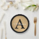 Personalisieren Sie diese goldmetallische Optik-Taste, die in Tellern mit schwarzem Rundpapier mit beliebigem Nachnamen und Single-kundenspezifischem Monogramm dargestellt ist.
