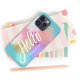 Hübsche pastellfarbene Farbflecken in Rosa, Pfirsich, Lila, Aqua, Gold, Blau und Weiß sind in diesem abstrakten Design verstreut, das in der modernen Schriftzeichen-Typografie "Hello"-Text enthält. Personalisieren Sie mit Ihrem Namen oder einem anderen gewünschten Text für einen Fall, der Sie einzigartig ist.