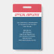 Ein berufliches Mitarbeiterteam-Abzeichen für Ihr Unternehmen. Modernes rotes, weißes und blaues Design. Fügen Sie den Mitarbeitern Foto, Name, ID-Nummer und andere wichtige Informationen hinzu. Informationen können auch auf der Rückseite hinzugefügt werden. Offiziell aussehendes Abzeichen, um Ihren Mitarbeitern zu helfen, sich herauszustellen und bei Bedarf identifiziert zu werden.