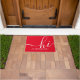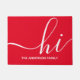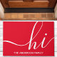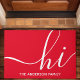 Herzlich willkommen in diesem personalisierten Haus. Mit einem modernen Schrift "hi" in Weiß auf einem lebendigen roten Hintergrund verleiht diese anpassbare Türmatte jedem Einstieg eine Touch von Charme.