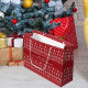 Weihnachtsbaum, Schneeflocke und Rentierfisch-Raute Pullover-Muster in Rot rund um Ihren personalisierten Text auf einer Urlaubsstickettasche, die einen Retro-Look hat. Mit diesen nostalgischen, altmodischen Taschen können Sie Ihre Urlaubsgeschenke individuell gestalten. Ideal für Firmengeschenke, die mit Ihrem Geschäftsnamen oder Firmennamen personalisiert werden können.