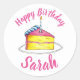 Personalisiert rosa Birthday Party Cake Slice Cand Runder Aufkleber