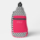Personalisierter Pink Black Dots Sling Bag. Personalisieren Sie die Tasche mit Ihrem Namen.
