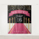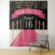 Erleben Sie Hollywood-Glamour bei Ihrem 16 . Geburtstag-Fest mit diesem individuellen Foto mit rosa Teppichboden und Samtseil. Der Ehrengast wird auf einem türkisfarbenen Marquee mit "16 . Geburtstag" unter Weiß dargestellt.